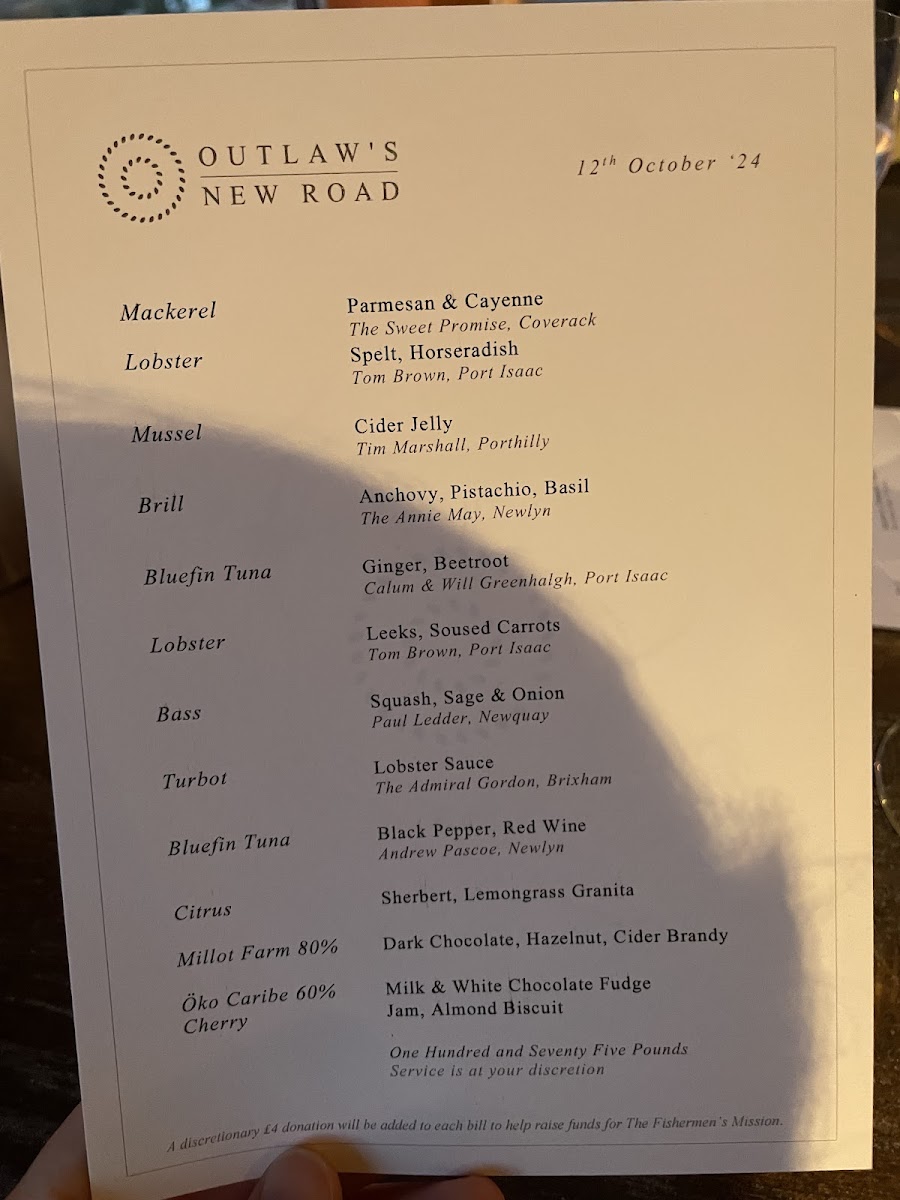 “ An unforgettable seafood culinary experience. My fiance and I dined here for dinner only two days after eating at Outlaw's other Michelin restaurant in Port Isaac (also amazing!) so had a very high bar to surpass. The staff were outstanding from our welcome to the attentive service and knowledge of the dishes. We were also given complimentary champagne as we were celebrating our engagement - a really nice touch. The restaurant has amazing views over the coast so id recommend sitting upstairs and booking an earlier reservation to get a choice of table. The seafood tasting menu was sublime, a true appreciation of quality, locally sourced produce which was completely different to the Fish Kitchen set menu (which was one of our concerns having only dined there a few days earlier!). Special shout outs to the baked brill and grilled turbot dishes - absolutely divine. If you are serious about great seafood then you cannot pass up an opportunity to eat here! 6*s if i could. ”